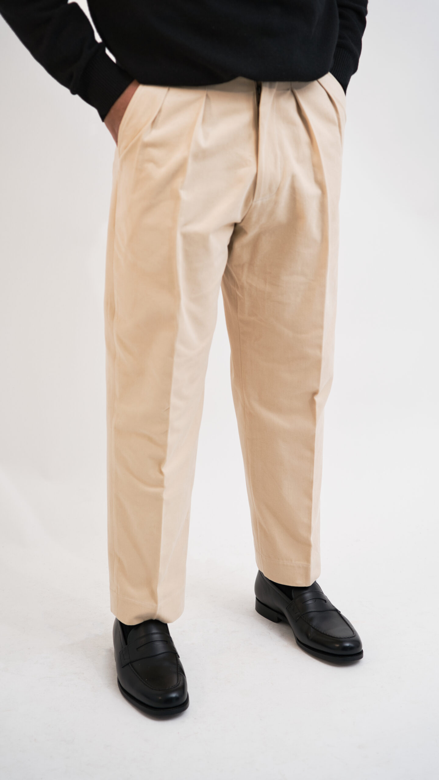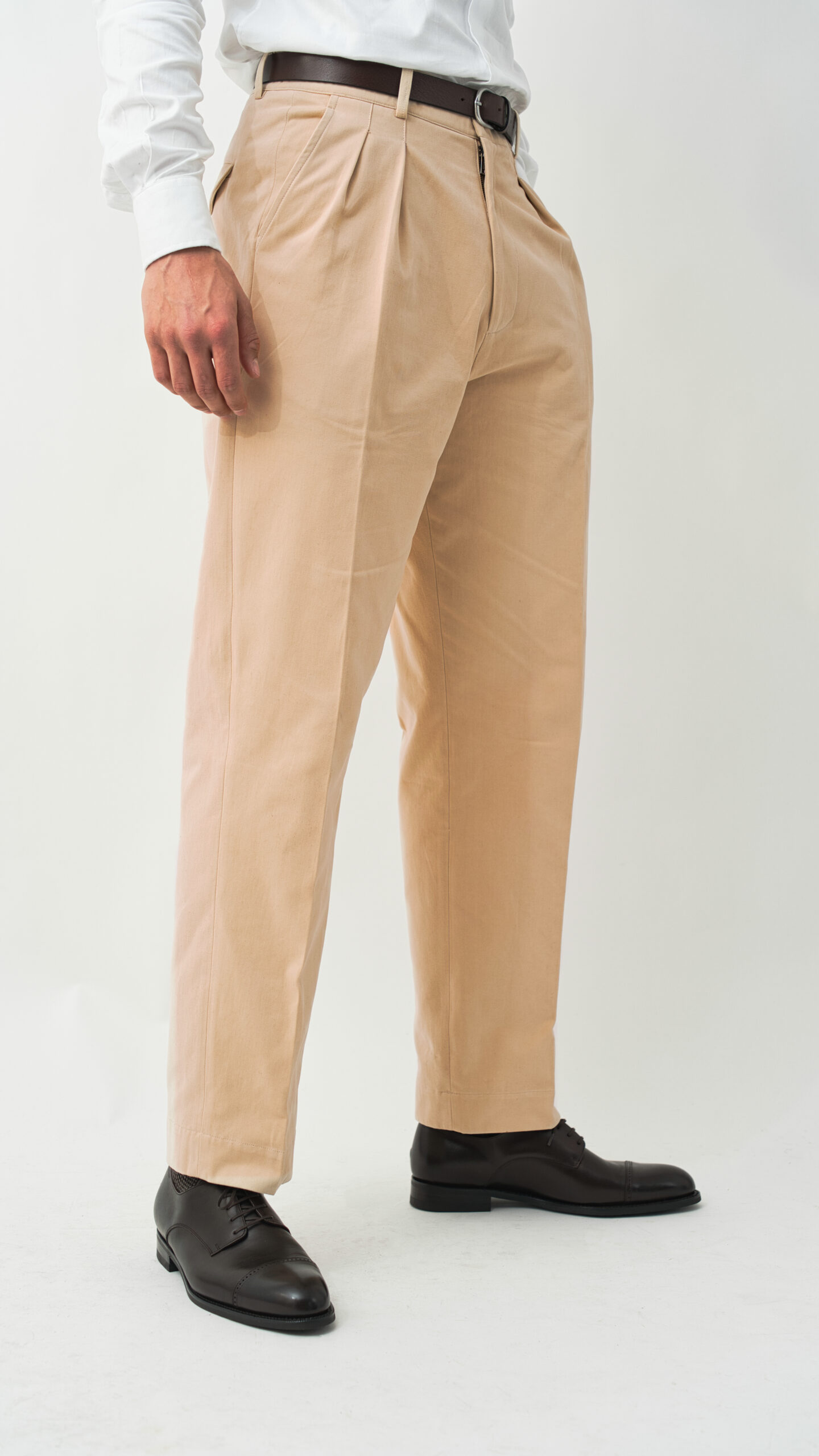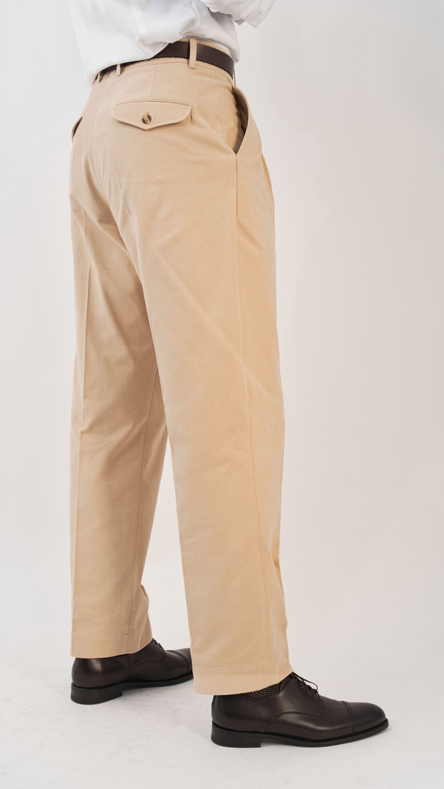 Le pantalon Classic Beige incarne la vision FOSTONI : proposer une pièce élégante, structurée et confortable, pensée pour les hommes à taille fine et cuisses développées.