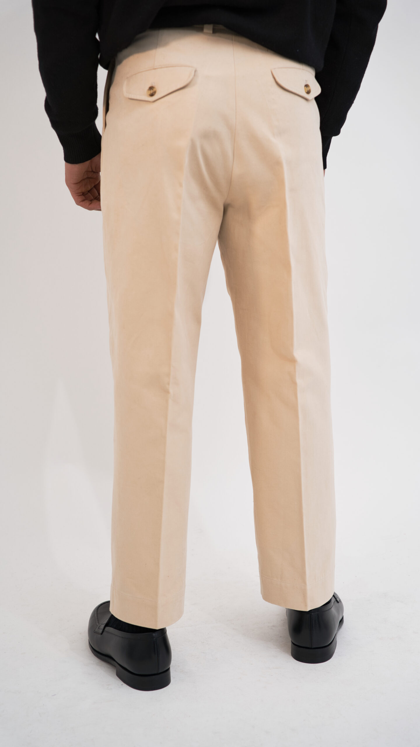 • Poches arrière passepoilées avec boutons